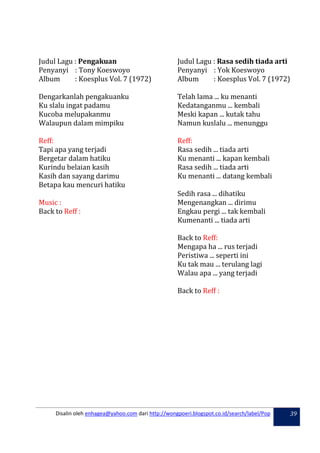 Koleksi Lirik Album Koes Plus Lengkap Enhagea Yahoo Com 2018
